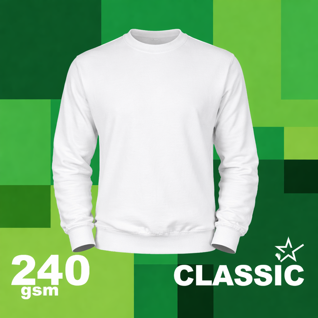 240g brushed fleece sweater with a clean crew neckline, designed for embroidery and printing.